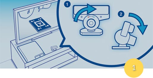 Die PlayStation®Eye-Kamera sollte unterhalb des Fernsehers platziert werden. Die Kamera sollte auf „Weitwinkelansicht“ stehen und möglichst weit nach unten geneigt werden.