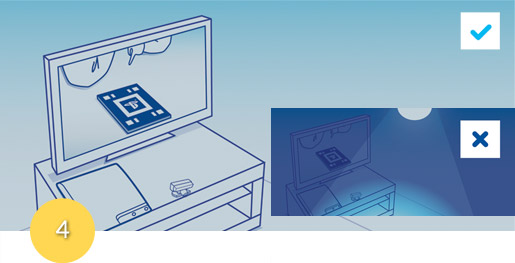 Der Raum sollte gleichmäßig beleuchtet und so hell wie möglich sein. So kann das Buch besser erkannt werden. Es sollten sich keine Strahler im Raum befinden, da diese dunkle Schatten werfen.